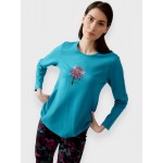 Μακρυμάνικη μπλούζα σε χρώμα Blue Teal απαλό με στρογγυλή λαιμουδιά και ανεξίτηλο τύπωμα.