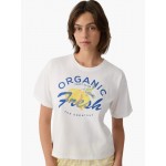 Μπλουζάκι κοντομάνικο σε χρώμα εκρού με ανεξίτηλο τύπωμα.