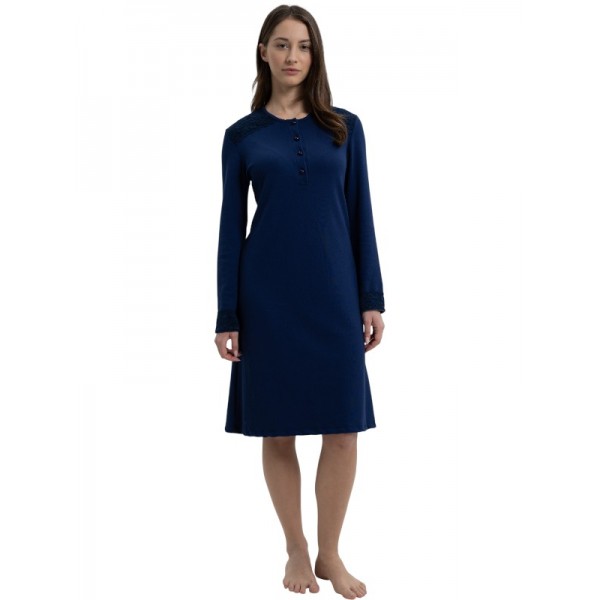 Νυχτικό σε χρώμα μαρίν σκούρο με πρακτική πατιλέτα στη λαιμουδιά.