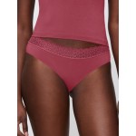 Μεταξωτό στρινγκ και λεία ανακυκλωμένη ζώνη στη μέση με δαντελένιο τελείωμα.