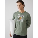 Μακρυμάνικη μπλούζα σε χρώμα χακί με στρογγυλή λαιμουδιά και ανεξίτηλο τύπωμα στο στήθος.
