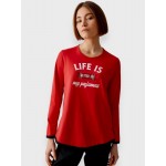 Μακρυμάνικη μπλούζα σε χρώμα κόκκινο με στρογγυλή λαιμουδιά και ανεξίτηλο τύπωμα.