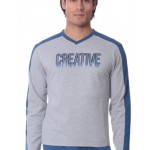 Μπλούζα σε χρώμα γκρι με VE στη λαιμουδιά και μοντέρνο ανεξίτηλο τύπωμα.εντυπωσιακή διχρωμία στα μανίκια.