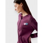 Μονόχρωμη σε χρώμα βυσσινί απαλό με πρακτική πατιλέτα και ανεξίτηλο τύπωμα στο στήθος, διαθέτει στρογγυλεμένο, ασύμμετρο ποδόγυρο και μήκος πάνω από το γόνατο.