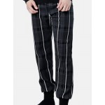 Παντελόνι καρό βαμβακερό σε χρώμα μαύρο με μαλακό λάστιχο στη μέση και στενή γραμμή στο πόδι.