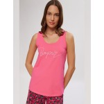 Μπλουζάκι αμάνικο σε χρώμα φουξ με ανεξίτηλο τύπωμα.