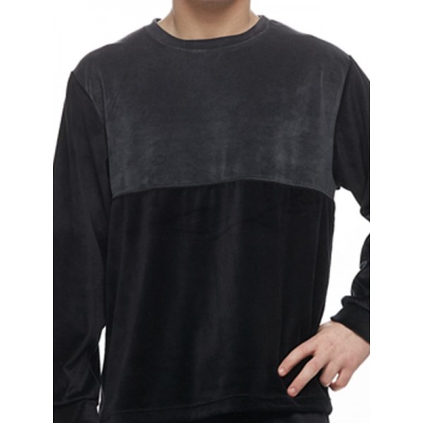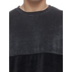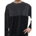 Μπλούζα βελούδινη σε μοντέρνα διχρωμία και στρογγυλή λαιμουδιά.