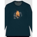 Μακρυμάνικη μπλούζα σε χρώμα πετρόλ με στρογγυλή λαιμουδιά και ανεξίτηλο τύπωμα στο στήθος.