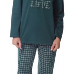 Παντελόνι καρό φούτερ σε χρώμα κυπαρισσί με μαλακό λάστιχο στη μέση και ίσια γραμμή στο πόδι.