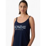 Μπλουζάκι τοπ σε χρώμα μαρίν με εντυπωσιακές τιράντες και ανεξίτηλο τύπωμα.