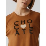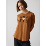 Μακρυμάνικη μπλούζα σε χρώμα κάραμελ με στρογγυλή λαιμουδιά και ανεξίτηλο τύπωμα.