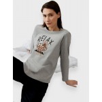 Μακρυμάνικη μπλούζα σε χρώμα γκρι μελανζέ με στρογγυλή λαιμουδιά και ανεξίτηλο τύπωμα.