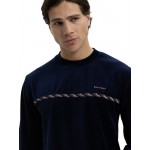 Μπλούζα βελούδο σε χρώμα μαρίν με στρογγυλή λαιμουδιά και και μοντέρνο χρωματιστό συρίτι στο στήθος.