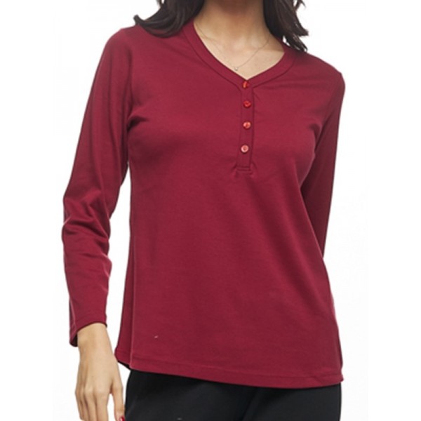 Μπλούζα βαμβακερή σε χρώμα μπορντώ με πρακτική πατιλέτα στη λαιμουδιά.