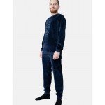 Μπλούζα βελούδο σε χρώμα μαρίν με στρογγυλή λαιμουδιά και ανεξίτηλο τύπωμα.